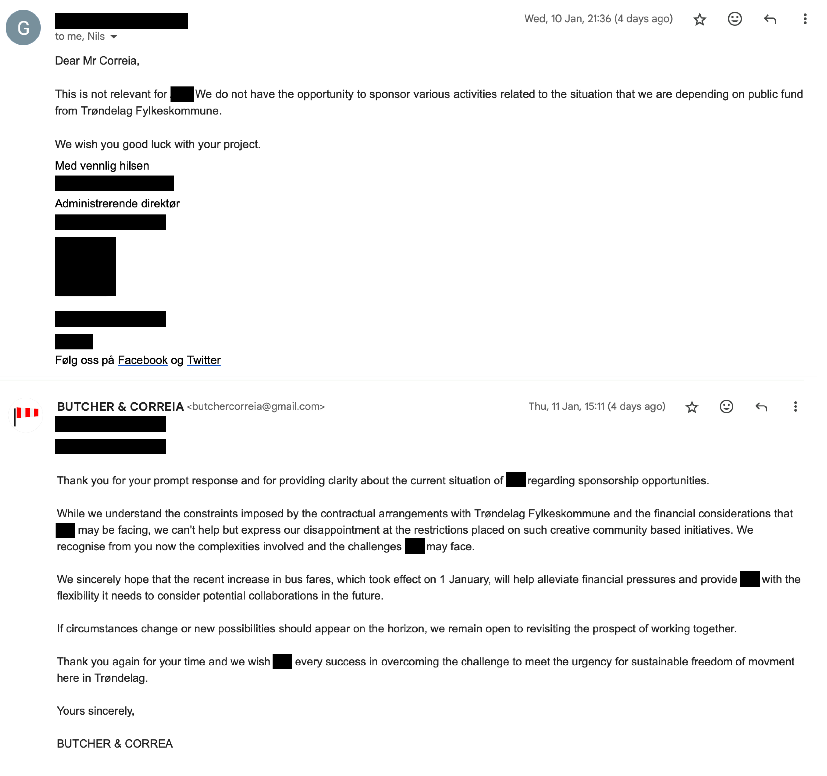 10:22 AM email to Trøndela-Avis sharing the project